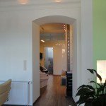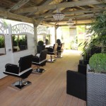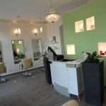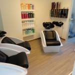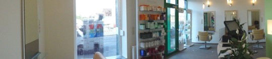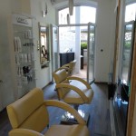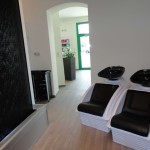 Der Eingangsbereich mit 6 Schneideplätzen ist voll klimatisiert und bietet, zusammen mit Wasserwänden aus frei fallendem Wasser, speziell für ältere Herrschaften ein angenehmes Raumklima auch an heißen Tagen. Der zweite Bereich mit 3 Waschplätzen und 3 weiteren Schneideplätzen bietet das natürliche angenehme Klima eines Sandstein - Jugendstil Hauses. Der dritte Bereich auf der Terrasse ist in der Freiluftsaison nutzbar.