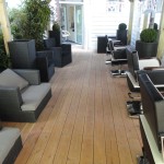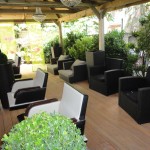 Die angeschlossene Außenterrasse bietet Ihnen die Möglichkeit, sich bei schönem Wetter die Haare in einem angenehmen Ambiente und Pflanzenumgebung schneiden und pflegen zu lassen